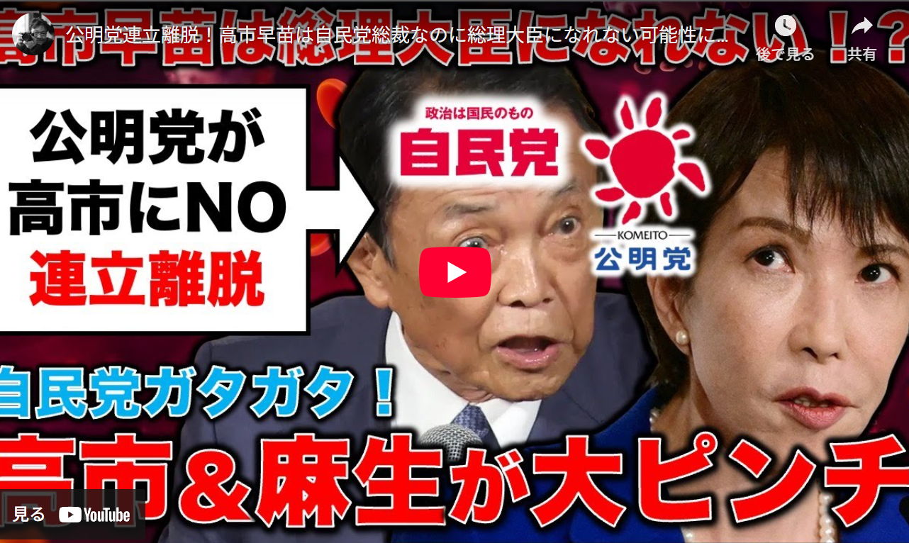 ■公明党連立離脱!高市早苗は自民党総裁なのに総理大臣になれない可能性について解説