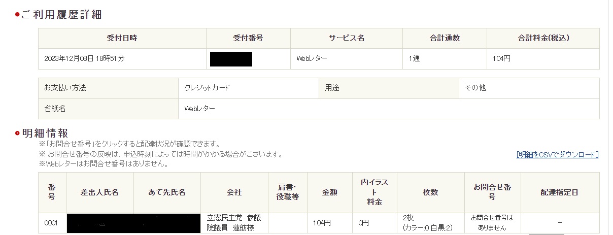 2023年12月8日(金)に、WEBレターを利用して、立憲民主党 参議院議員 蓮舫様へお手紙を出しました。その内容です。