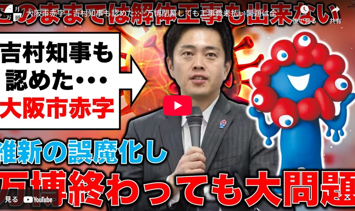 ■大阪市赤字!吉村知事も認めた・・・万博閉幕しても工事費未払い問題は全く解決せず!
