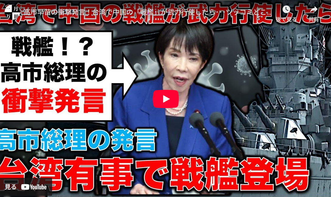 ◆高市早苗の衝撃発言!台湾で中国の「戦艦」が武力行使したら・・・ツッコミどころ満載の理由とは?