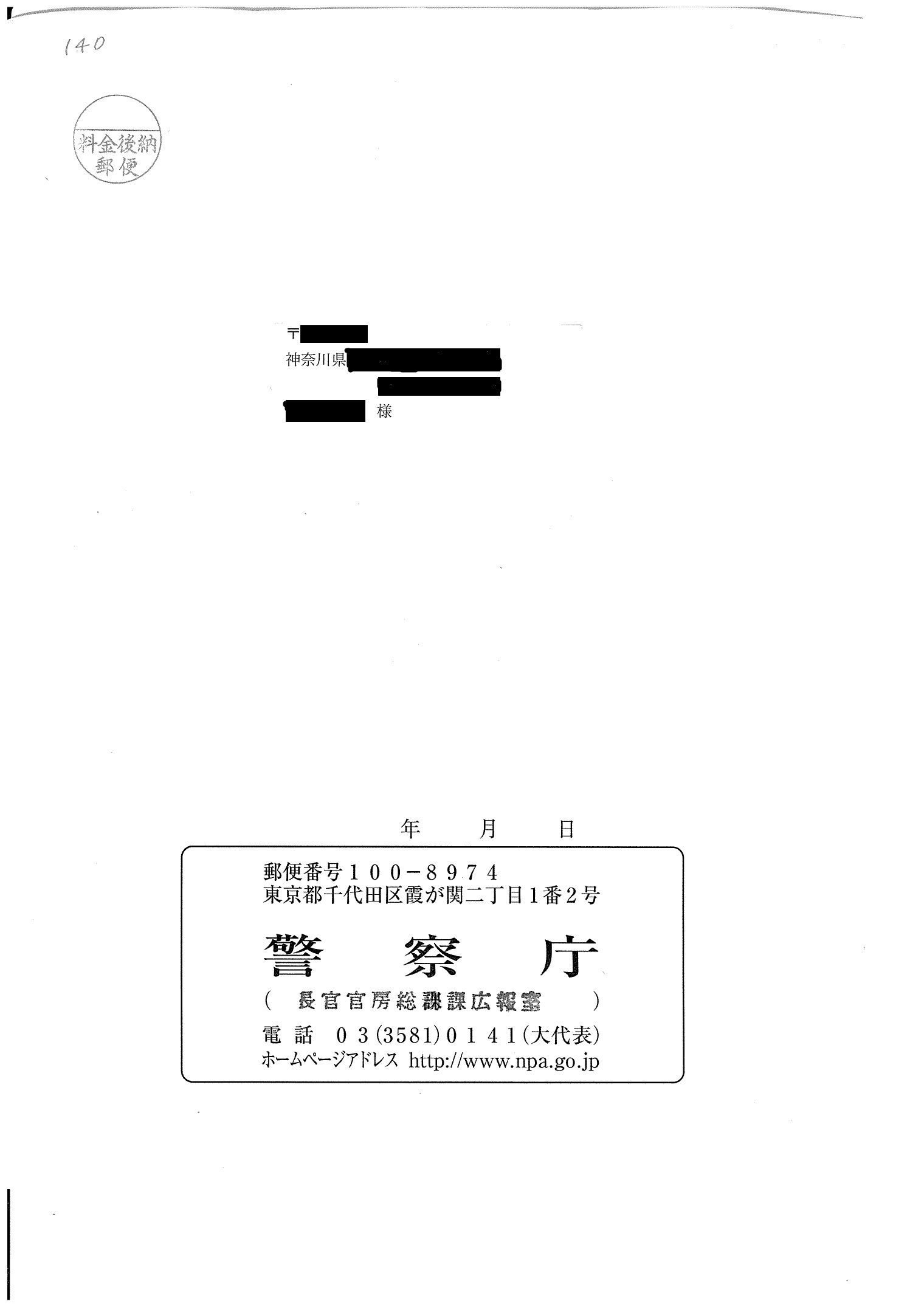 2024年2月16日(金)、6年かけて初めて警察庁から書類が届きました。その封筒を公開します。書類の内容は近日中に公開します。