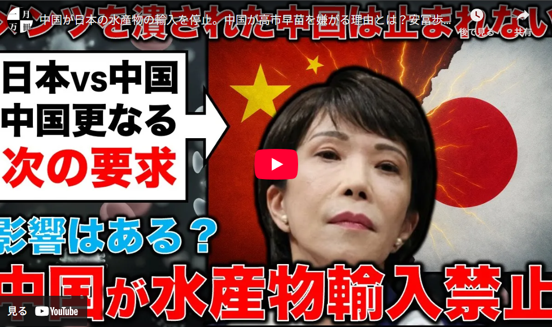 ◆中国が日本の水産物の輸入を停止。中国が高市早苗を嫌がる理由とは?
