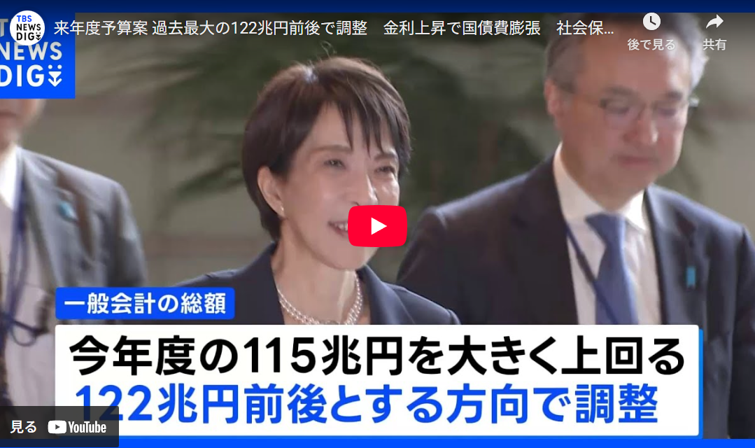◆来年度予算案 過去最大の122兆円前後で調整 金利上昇で国債費膨張 社会保障・防衛費も増加