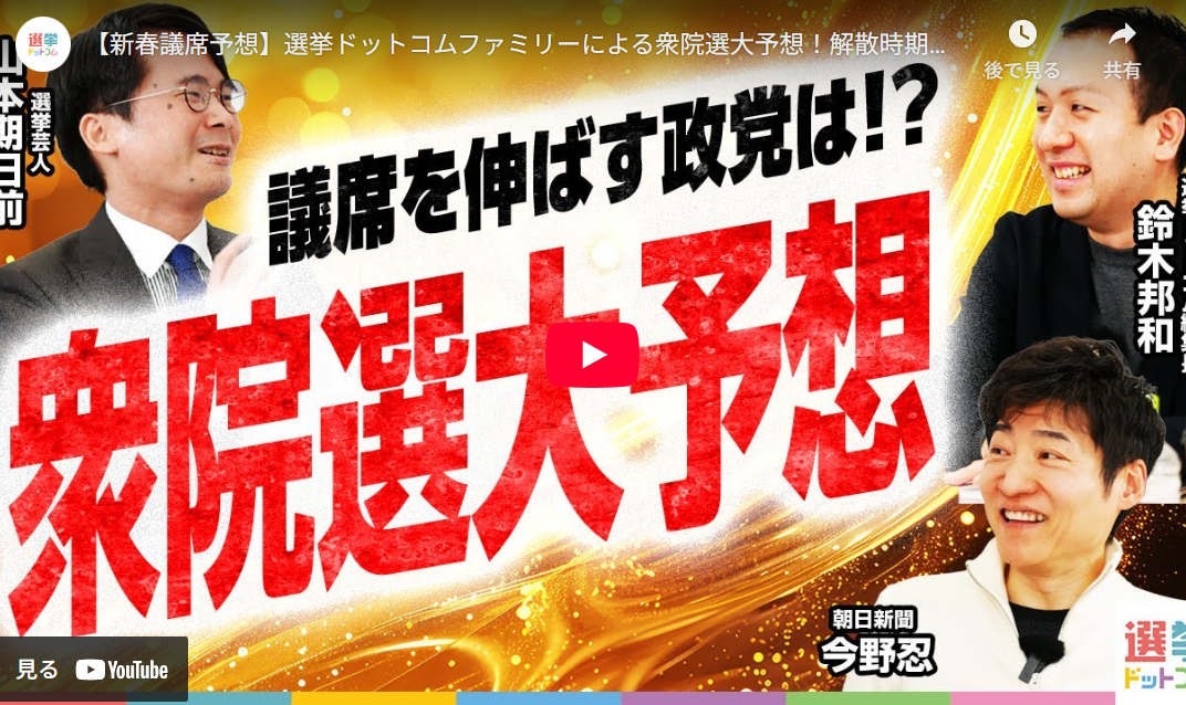 ◆【新春議席予想】選挙ドットコムファミリーによる衆院選大予想!解散時期はいつだ!?議席を伸ばすのはあの政党?各党の議席数はどうなる?
