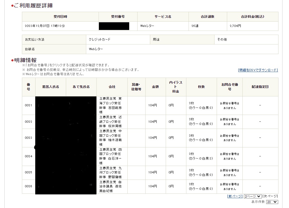 2023年12月7日(木)に、WEBレターで、立憲民主党の主な議員様27人に手紙を送りました。
