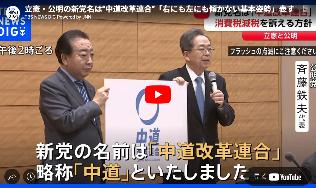 ◆立憲・公明の新党名は“中道改革連合”「右にも左にも傾かない基本姿勢」表す 国民・玉木代表は「結局選挙のため」参加否定 消費税減税訴えへ|TBS NEWS DIG