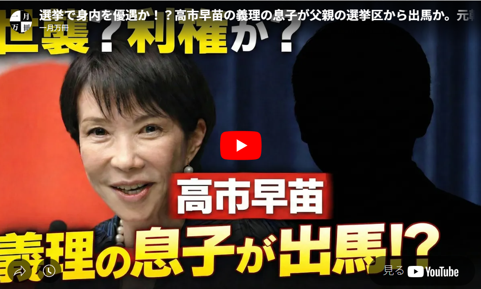 ◆選挙で身内を優遇か!?高市早苗の義理の息子が父親の選挙区から出馬か