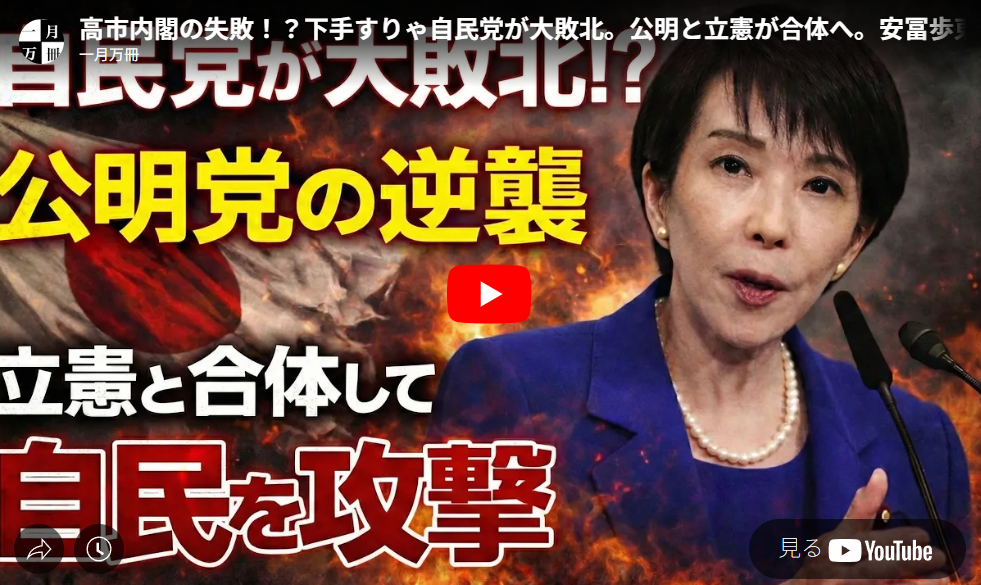 ◆高市内閣の失敗!?下手すりゃ自民党が大敗北。公明と立憲が合体へ