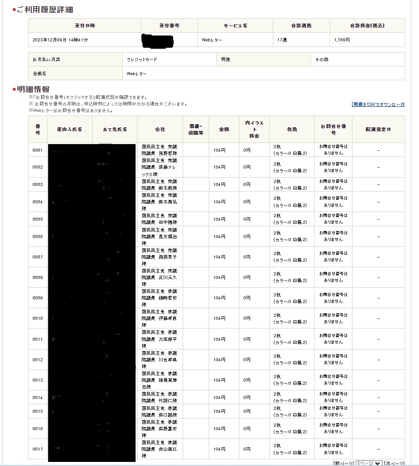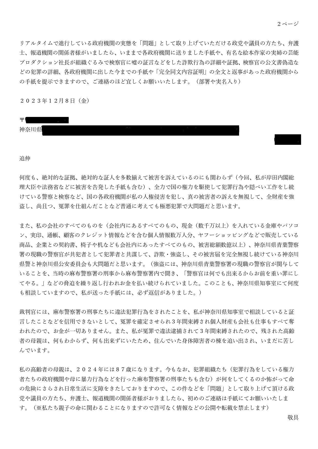 2023年12月9日(土)に、WEBレターで、国民民主党の衆議院、参議院の主な議員様たち17人に手紙を送りました。その詳細内容です。