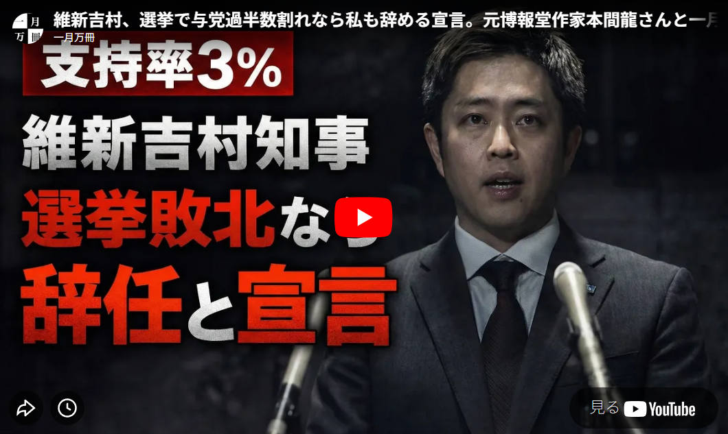 ◆維新吉村、選挙で与党過半数割れなら私も辞める宣言