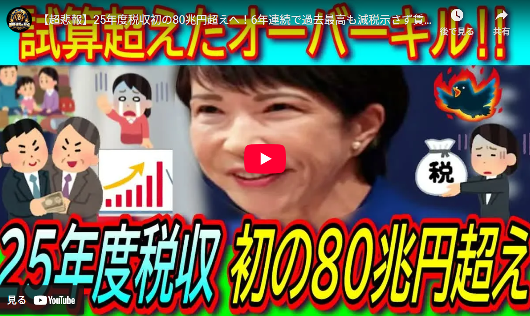 ◆【超悲報】25年度税収初の80兆円超えへ!6年連続で過去最高も減税示さず賃上げ要請【消費税減税⧸法人税⧸経済政策⧸物価高対策】