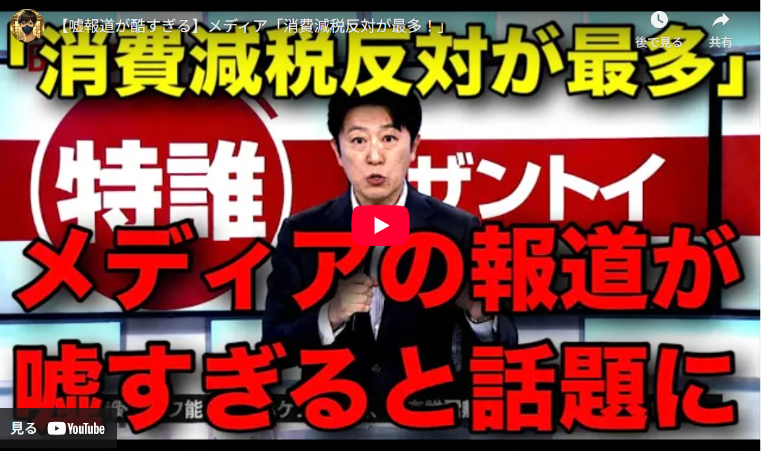 ◆【嘘報道が酷すぎる】メディア「消費減税反対が最多!」
