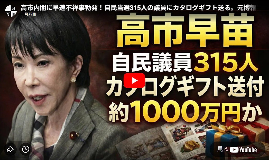 ◆高市内閣に早速不祥事勃発!自民当選315人の議員にカタログギフト送る