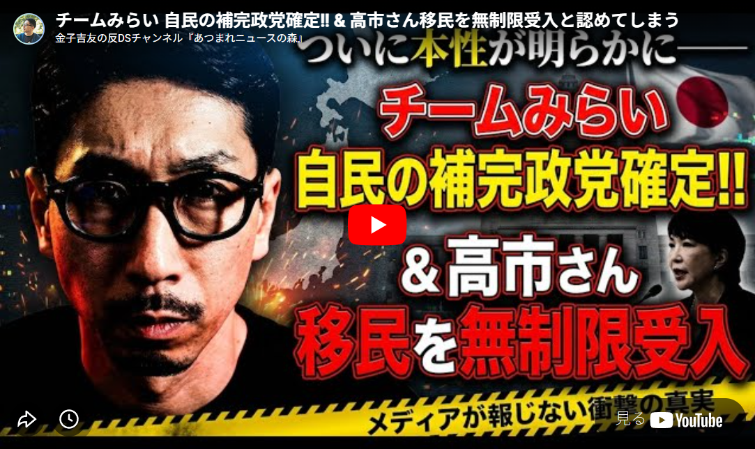 ◆チームみらい 自民の補完政党確定!! & 高市さん移民を無制限受入と認めてしまう