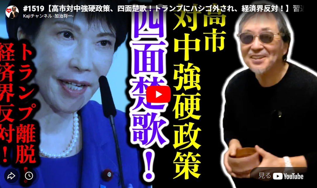 ◆【高市対中強硬政策、四面楚歌!トランプにハシゴ外され、経済界反対!】習近平を怒らせ、日本経済大ピンチ!外交、経済、政治…みんな頓珍漢で、頼みのトランプにもハシゴ外され、国内外で孤立へ!
