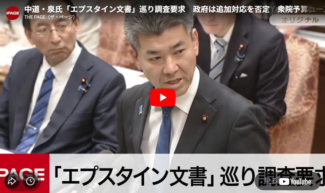 ◆中道・泉氏「エプスタイン文書」巡り調査要求 政府は追加対応を否定 衆院予算委(2026年3月5日)