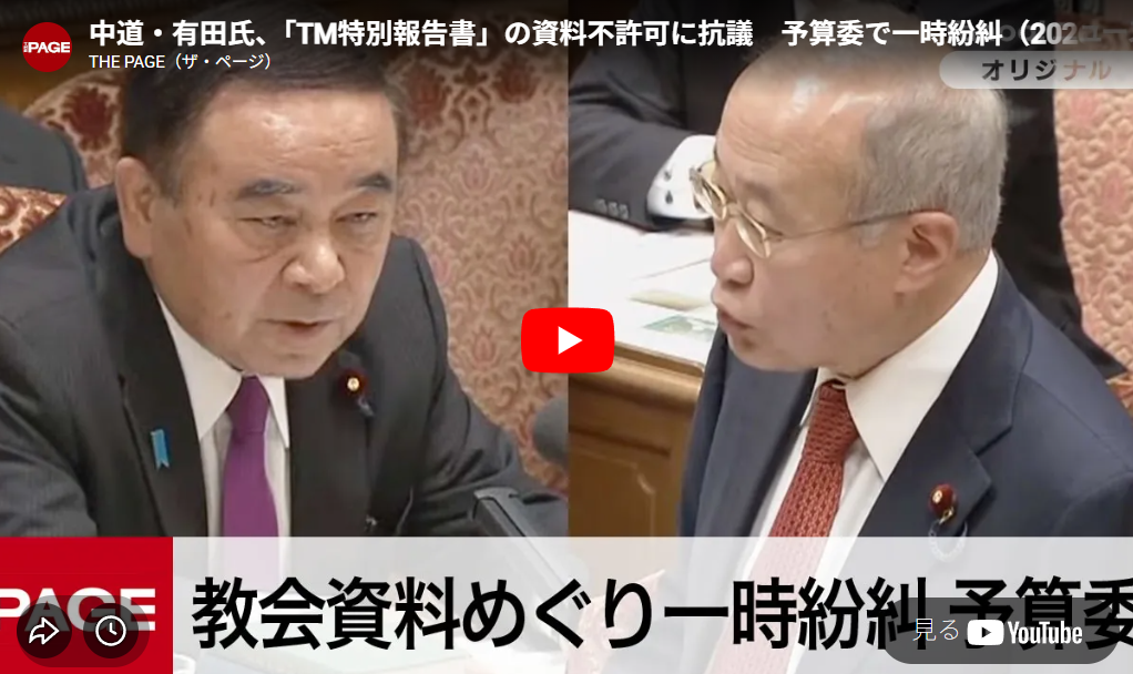 ◆中道・有田氏、「TM特別報告書」の資料不許可に抗議 予算委で一時紛糾(2026年3月6日)