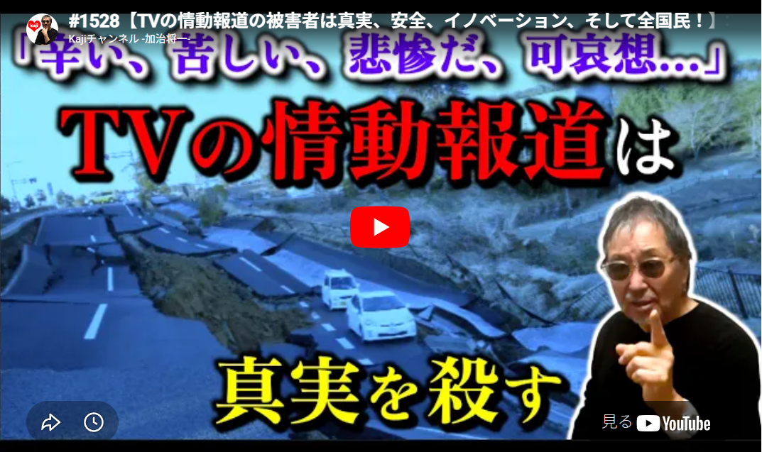 ◆【TVの情動報道の被害者は真実、安全、イノベーション、そして全国民!】地震災害は都市計画、防災インフラを怠っている政府、地方自治体による人災とも言えます。ゾンビメディアはそこから目を逸せます