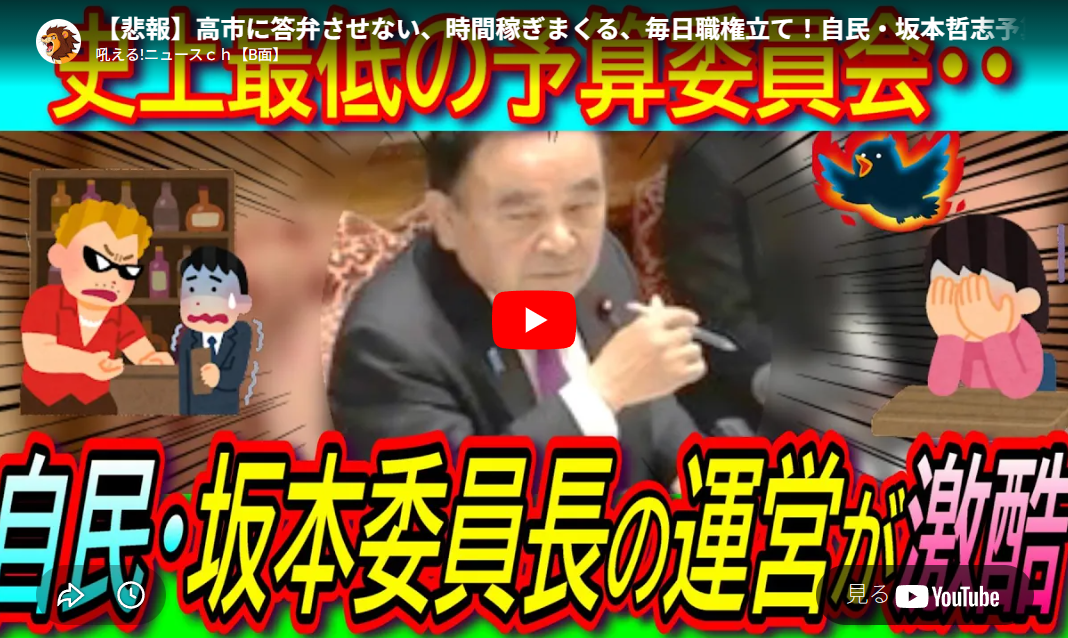◆【悲報】高市に答弁させない、時間稼ぎまくる、毎日職権立て!自民・坂本哲志予算委員長のやり方が強引すぎる【史上最悪/コメ高騰/独裁政治】