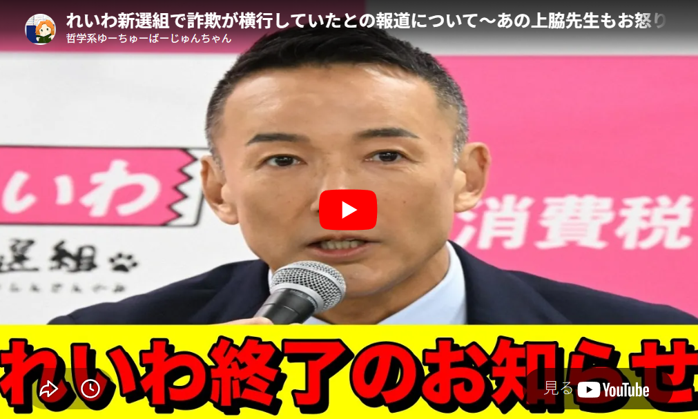 ◆れいわ新選組で詐欺が横行していたとの報道について〜あの上脇先生もお怒り〜