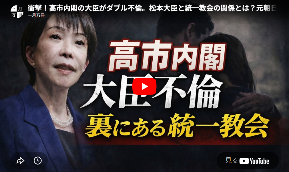 ◆衝撃!高市内閣の大臣がダブル不倫。松本大臣と統一教会の関係とは?