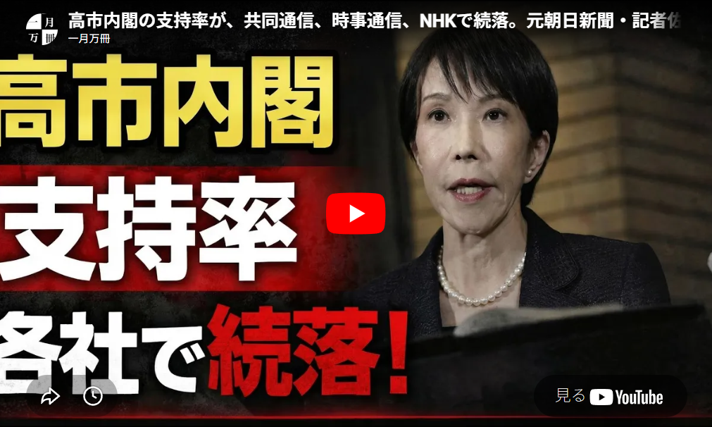◆高市内閣の支持率が、共同通信、時事通信、NHKで続落