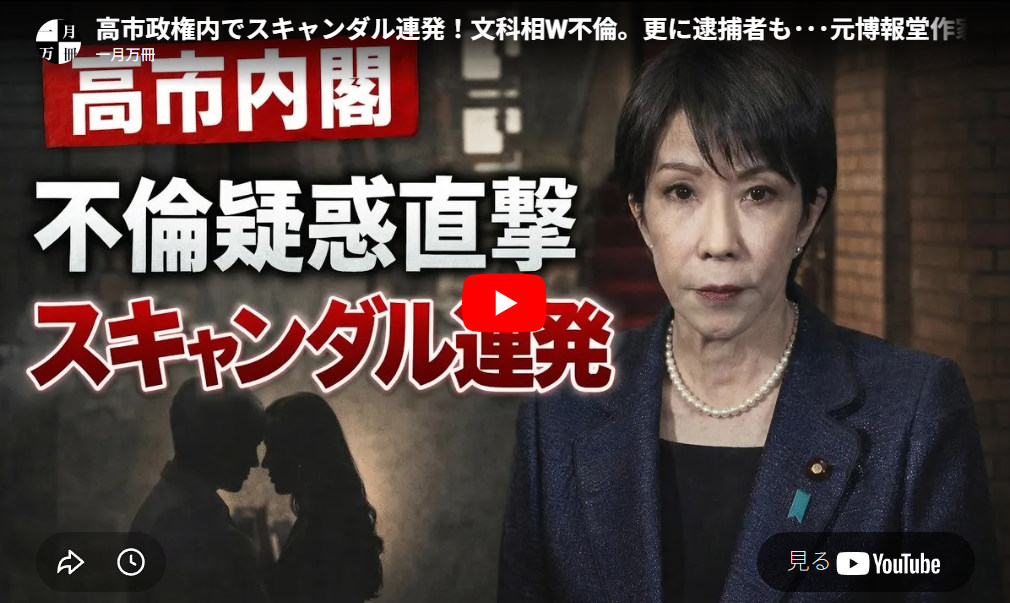 ◆高市政権内でスキャンダル連発!文科相W不倫。更に逮捕者も・・・