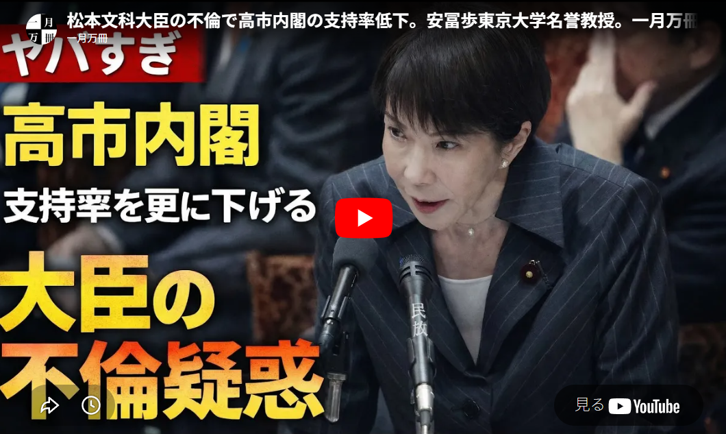 ◆松本文科大臣の不倫で高市内閣の支持率低下