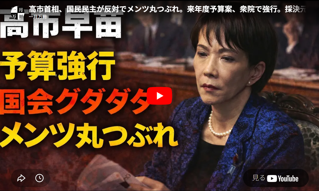 ◆高市首相、国民民主が反対でメンツ丸つぶれ。来年度予算案、衆院で強行