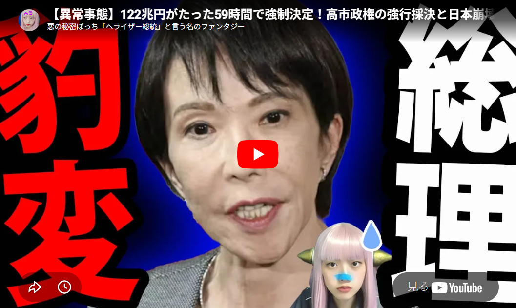 ◆【異常事態】122兆円がたった59時間で強制決定!高市政権の強行採決と日本崩壊の危機!石原環境相の「化石燃料やめる」発言