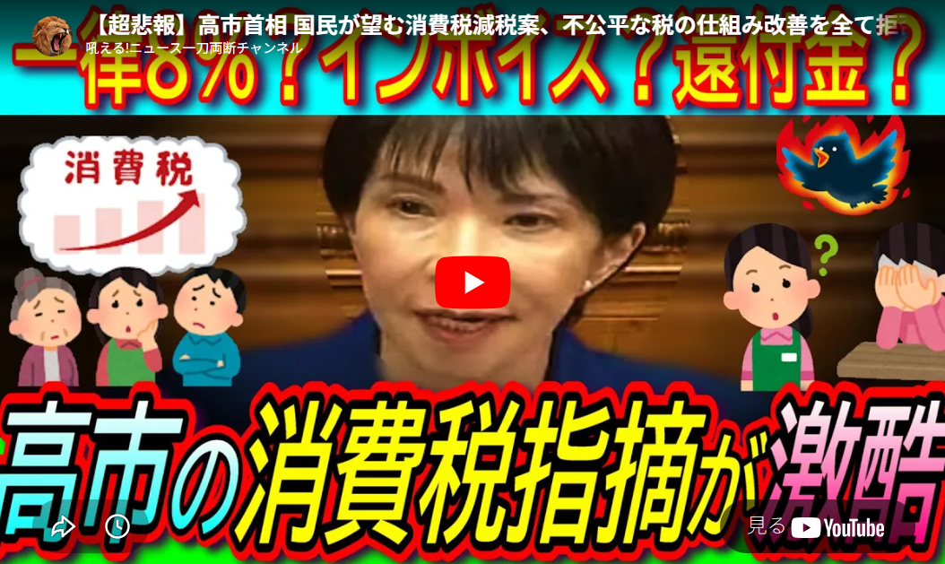 ◆【超悲報】高市首相 国民が望む消費税減税案、不公平な税の仕組み改善を全て拒否!【一律減税/インボイス/輸出還付金/予算成立】