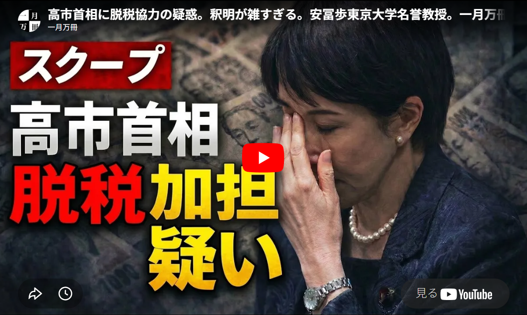 ◆高市首相に脱税協力の疑惑。釈明が雑すぎる