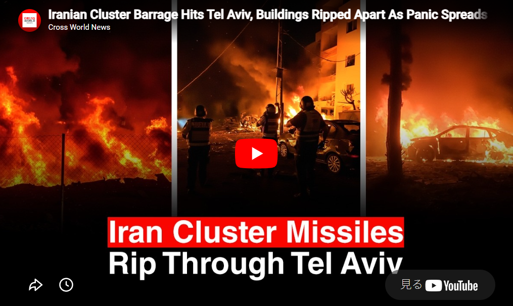◆イランによるクラスター爆弾攻撃がテルアビブを直撃、建物が破壊されパニックが広がる