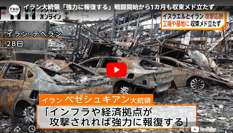 ◆イラン大統領「強力に報復する」戦闘開始から1カ月も収束メド立たず イスラエルと攻撃応酬(2026年03月29日)