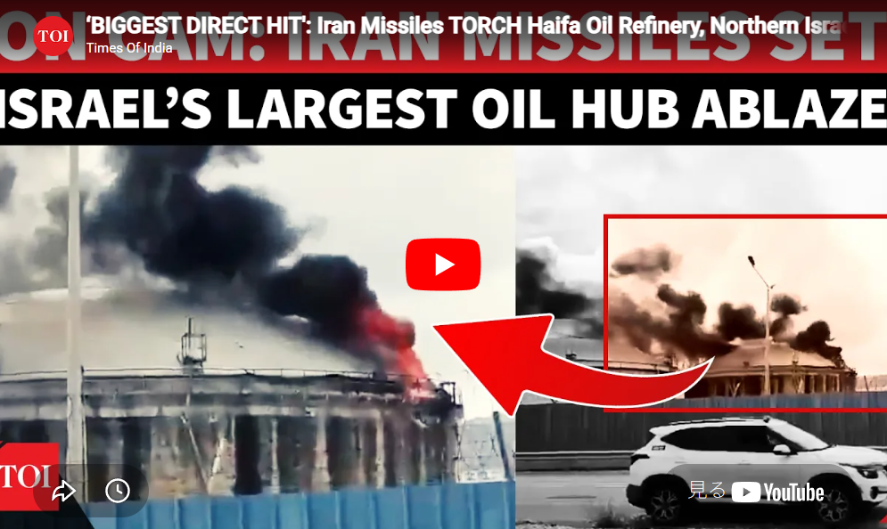 ◆「史上最大の直撃」:イランのミサイルがハイファの石油精製所を炎上、イスラエル北部が大炎上|動画を見る