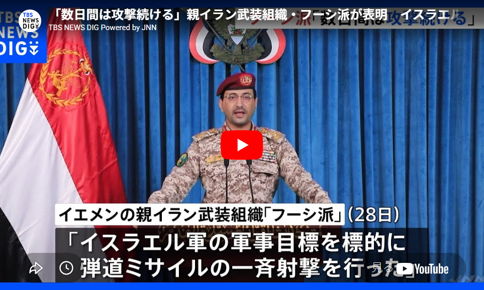 ◆「数日間は攻撃続ける」親イラン武装組織・フーシ派が表明 イスラエルは報復可能性 アメリカも地上作戦の準備報道「新たな危険な局面」|TBS NEWS DIG