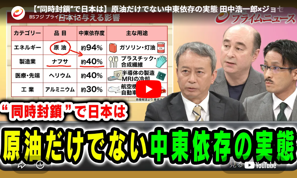 【“同時封鎖”で日本は】原油だけでない中東依存の実態 田中浩一郎×ジョセフ・クラフト×吉田智聡 2026/4/1放送<後編>【BSフジ プライムニュース】