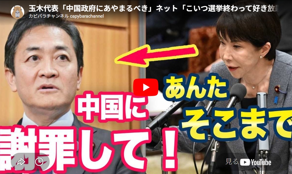 玉木代表「中国政府にあやまるべき」ネット「こいつ選挙終わって好き放題やってるな」