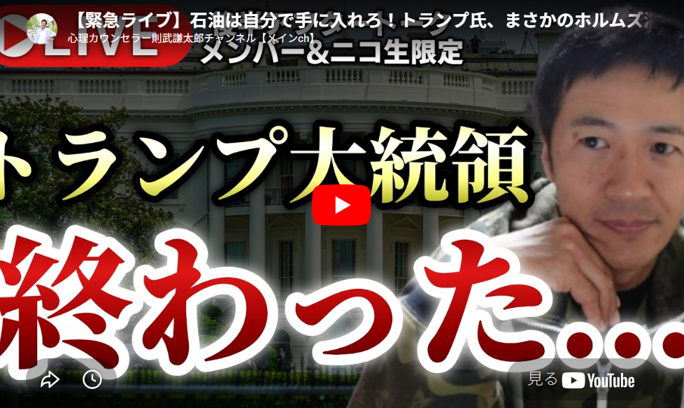 【緊急ライブ】石油は自分で手に入れろ!トランプ氏、まさかのホルムズ海峡問題を他国に委ねる考え!&NATO脱退を示唆!【心理カウンセラー則武謙太郎】