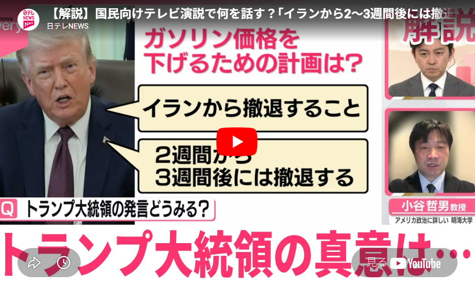 【解説】国民向けテレビ演説で何を話す?「イランから2~3週間後には撤退」トランプ大統領の真意は