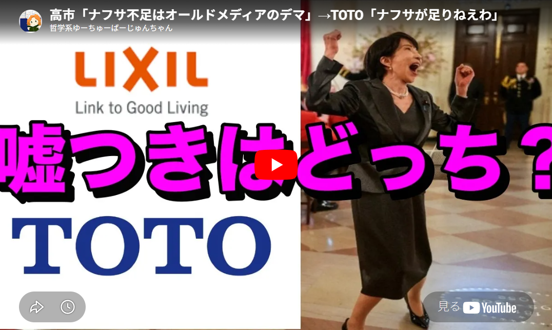 高市「ナフサ不足はオールドメディアのデマ」→TOTO「ナフサが足りねえわ」